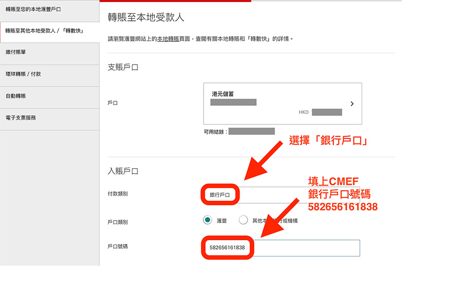 如需CMEF發出年度免稅收據,請於捐款後把交易紀錄截圖,並提供姓名、電話及通訊地址,到上載捐款憑證上傳捐款紀錄。