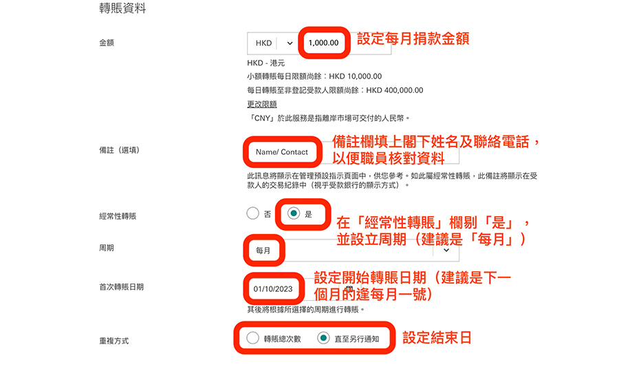 您可直接透過本會線上捐款系統進行線上定期定額捐款。